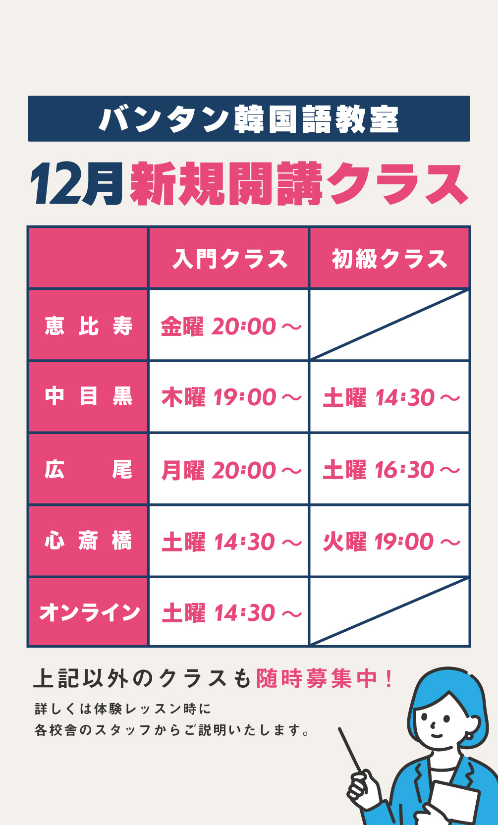 - もちろんです。韓国語を学んだことがない方は、まずは入門クラスからスタートしましょう!